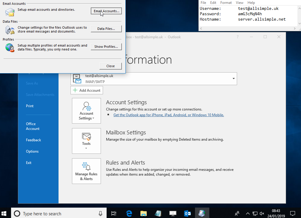 This guide is for adding accounts to Outlook that has existing accounts, if you don't have any accounts in Outlook and just want to add this as your first account, please follow these instructions instead.
