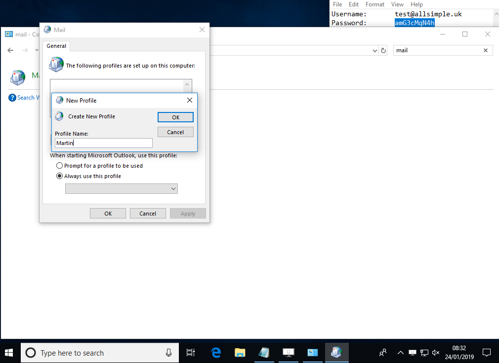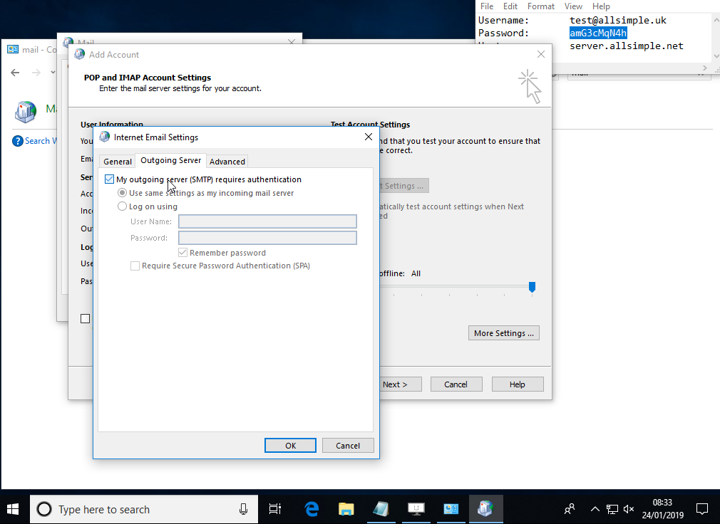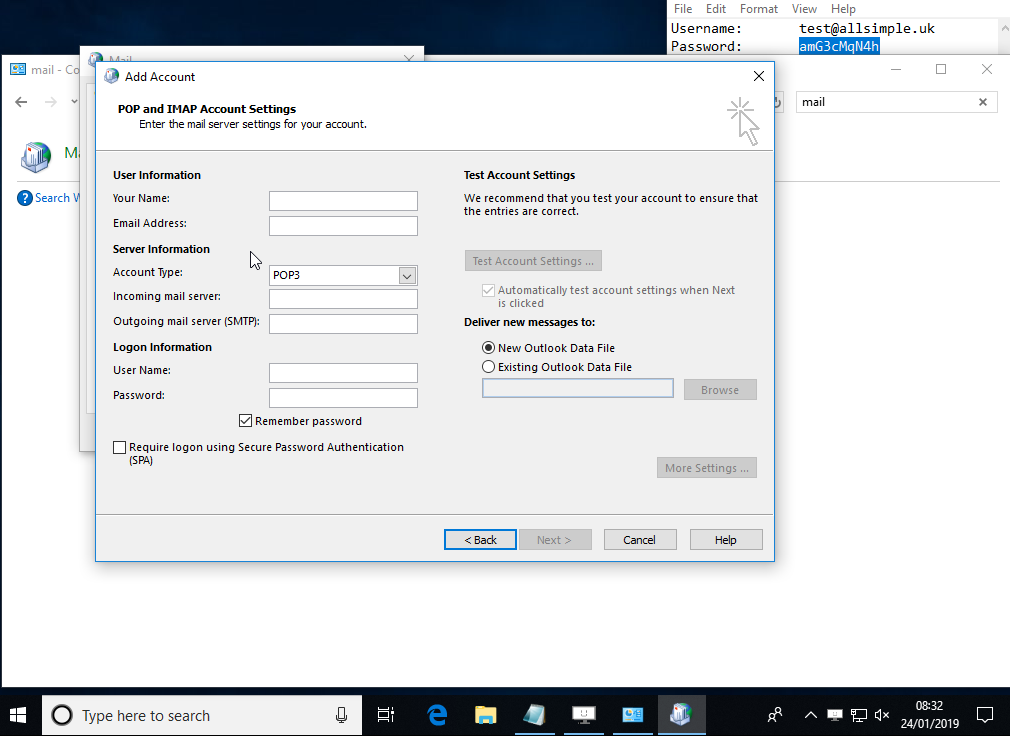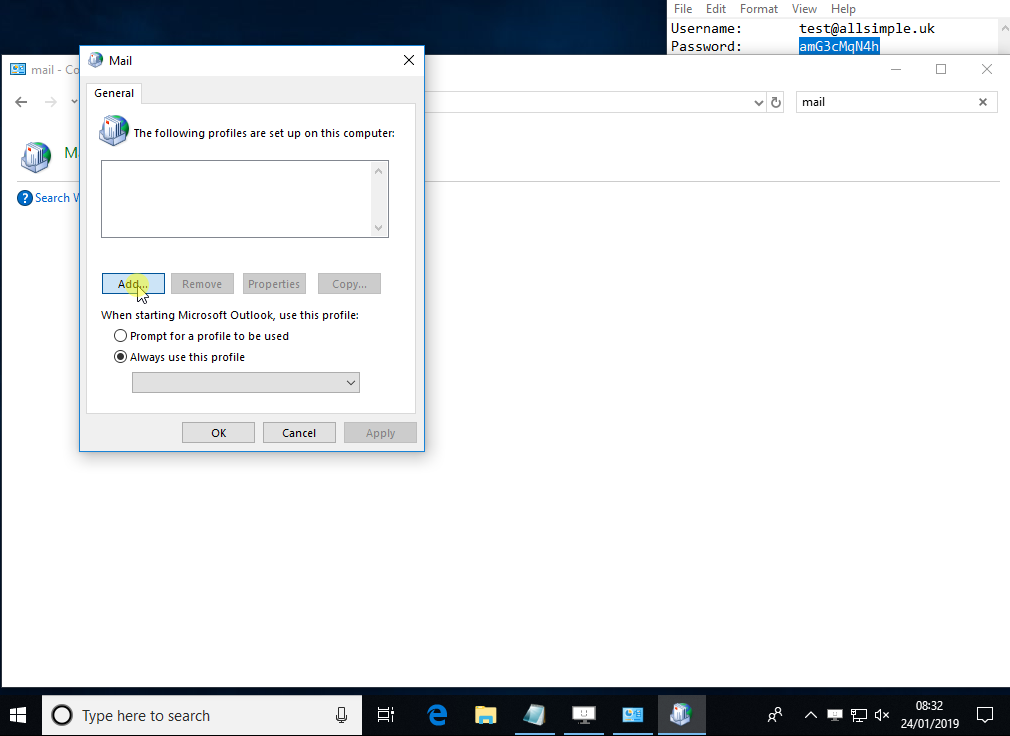 This guide is for adding accounts to Outlook when you don't already have any accounts, if you already have some accounts in Outlook and just want to add this alongside, please follow these instructions instead.